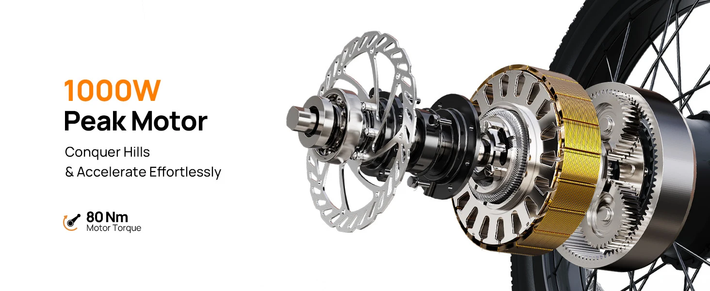 The powerful 1000W motor helps you climb hills and accelerate smoothly, reaching speeds up to about 28MPH—perfect for those with weak legs who still want independence.