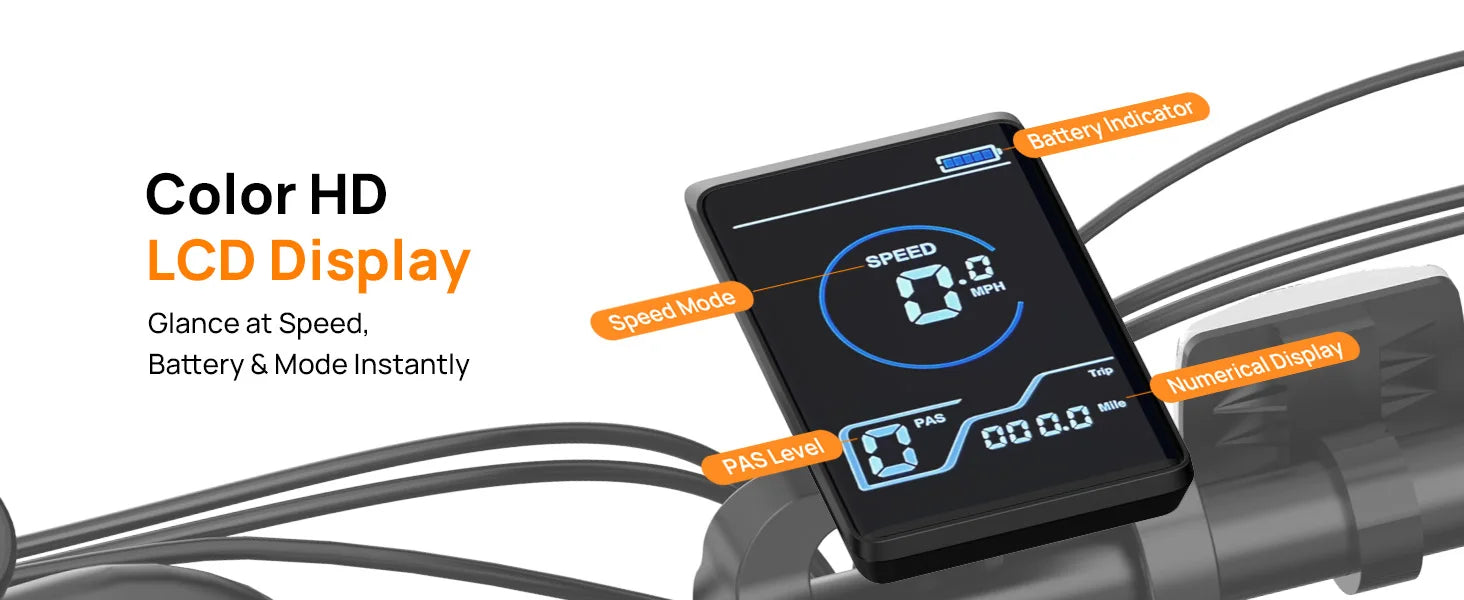 • Conquer any terrain with this fat-tire e-bike—powered by a 1000W motor, 48V 13AH battery, and front suspension for smooth rides. The LCD display keeps you in control, whether cruising city streets, tackling trails, or exploring the great outdoors.