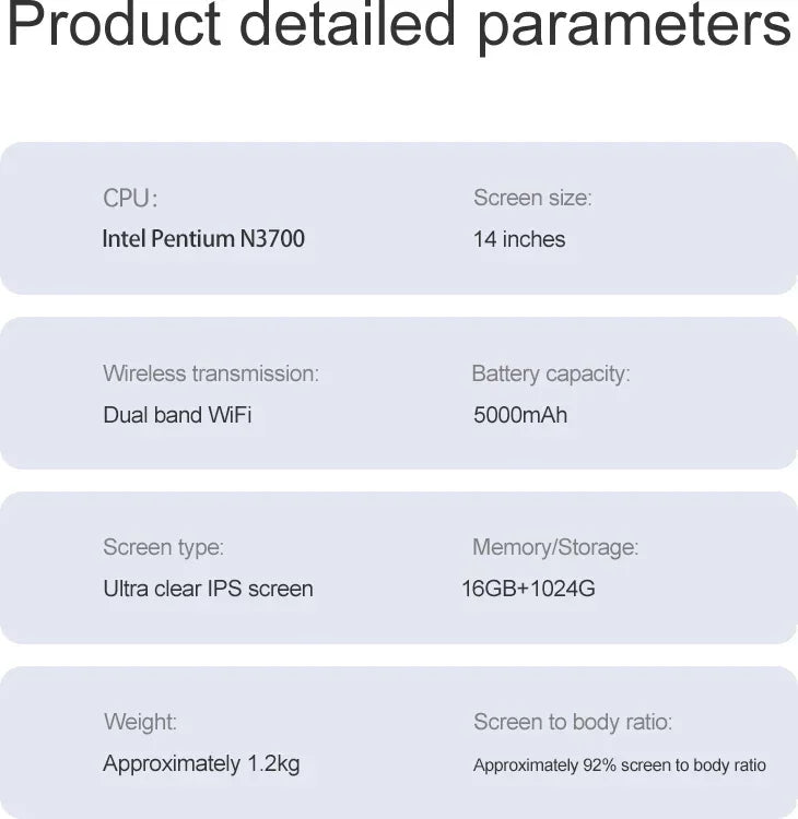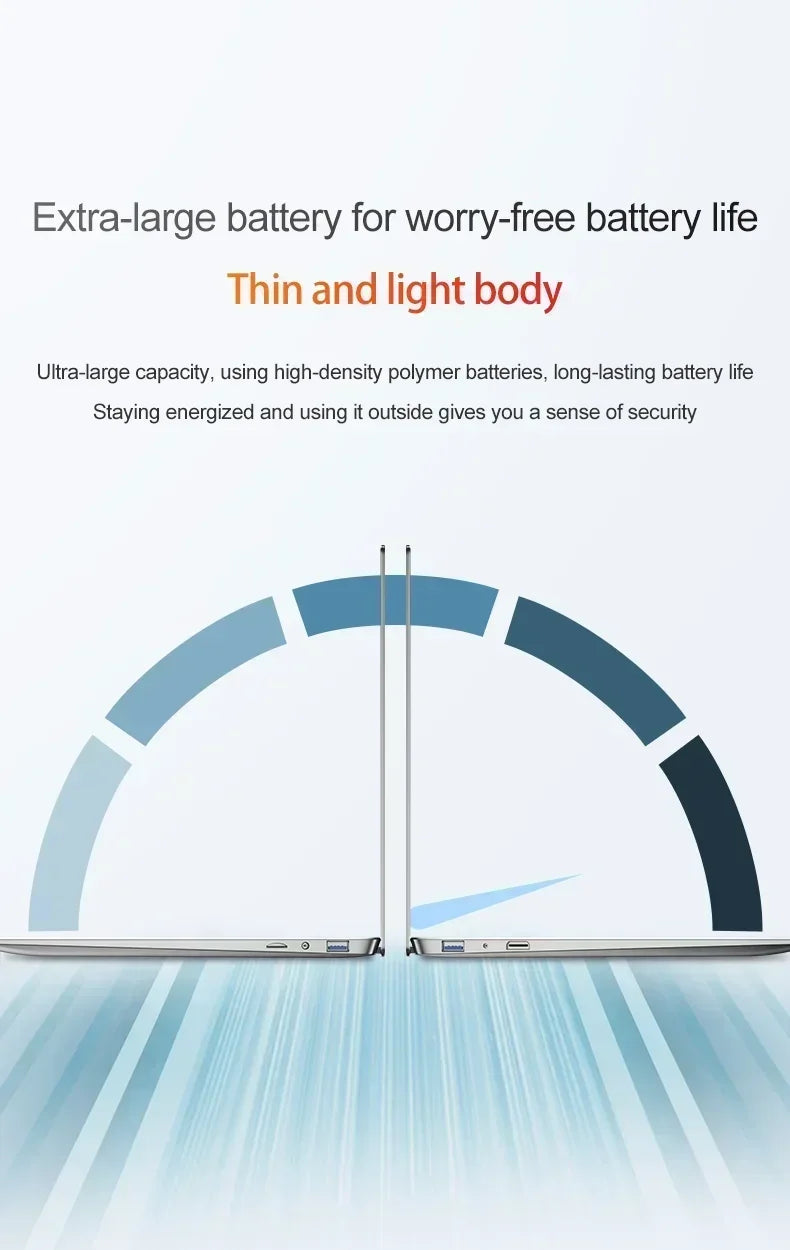 Ultra Slim 14.1" Laptop 16GB RAM 2TB SSD Intel N3700 Notebook Gamer Windows 11 Pro 1920*1080 Display Office Study Computer PC